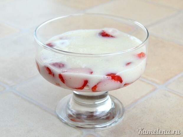 6. Полить кремом так, чтобы полностью покрыть клубнику.