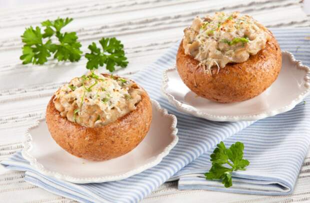 15. Запекайте жульен в булочках 10 минут при температуре 180 градусов.